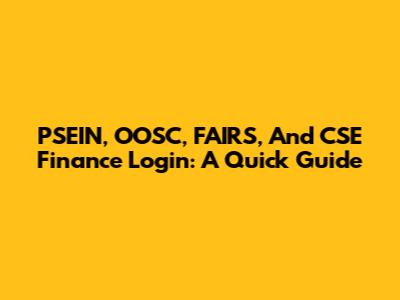 PSEIN, OOSC, FAIRS, And CSE Finance Login: A Quick Guide
