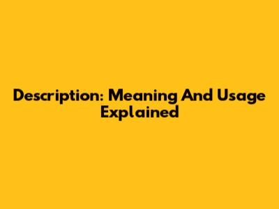 Description: Meaning And Usage Explained