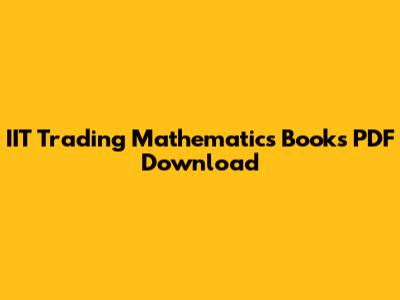IIT Trading Mathematics Books PDF Download