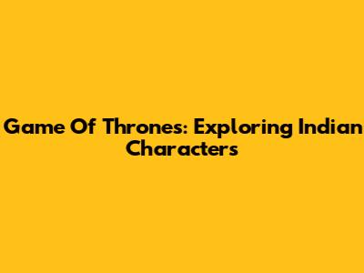 Game Of Thrones: Exploring Indian Characters