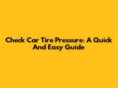 Check Car Tire Pressure: A Quick And Easy Guide