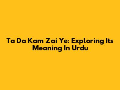 Ta Da Kam Zai Ye: Exploring Its Meaning In Urdu