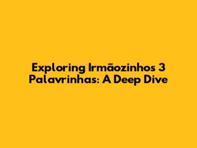 Exploring 'Irmãozinhos 3 Palavrinhas': A Deep Dive