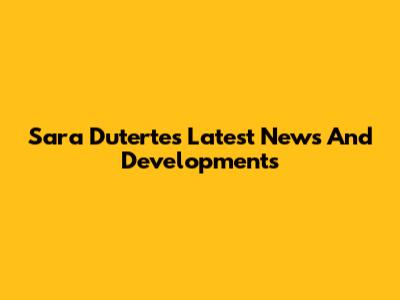 Sara Duterte's Latest News And Developments