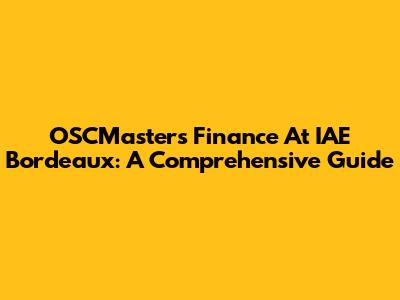 OSCMaster's Finance At IAE Bordeaux: A Comprehensive Guide