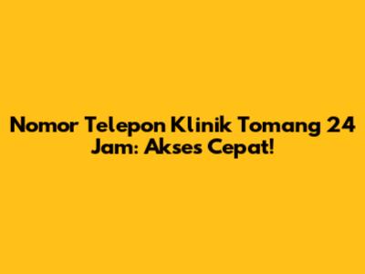 Nomor Telepon Klinik Tomang 24 Jam: Akses Cepat!