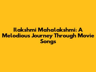 Ilakshmi Mahalakshmi: A Melodious Journey Through Movie Songs