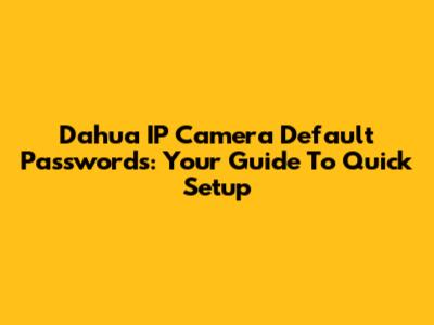 Dahua IP Camera Default Passwords: Your Guide To Quick Setup