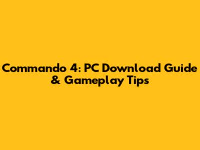 Commando 4: PC Download Guide & Gameplay Tips
