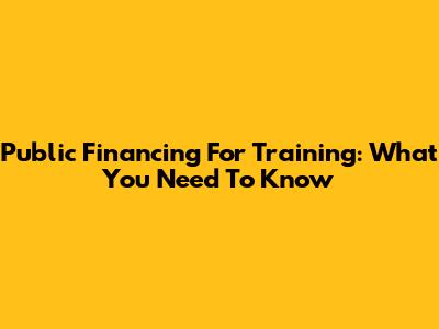 Public Financing For Training: What You Need To Know