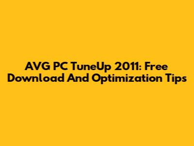 AVG PC TuneUp 2011: Free Download And Optimization Tips
