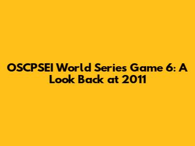 Hey sports fans, let's rewind the clock and dive into a classic: OSCPSEI World Series Game 6 from 2011. This game wasn't just a contest; it was a rollercoaster of emotions, a testament to resilience, and a moment etched forever in the memories of baseball enthusiasts. Buckle up, because we're about to relive the drama, the heroes, and the unforgettable moments that defined this epic showdown. We'll explore the key players, the pivotal plays, and the lasting impact of this historic game. This was a battle between the St. Louis Cardinals and the Texas Rangers, and it was a series that had everyone on the edge of their seats. Let's get into the details, shall we?