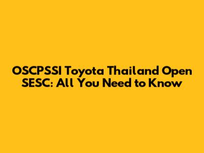OSCPSSI Toyota Thailand Open SESC: All You Need To Know