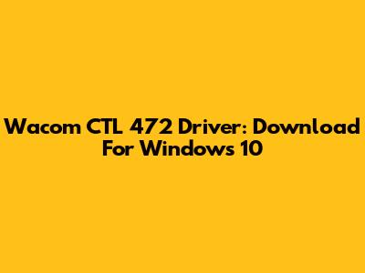 Wacom CTL 472 Driver: Download For Windows 10