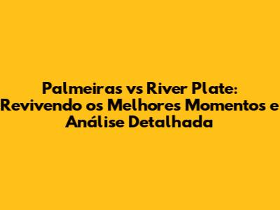O Palmeiras, com sua história vitoriosa no Brasil, e o River Plate, um dos clubes mais tradicionais da Argentina, sempre entram em campo com o objetivo de mostrar sua força e superioridade. A cada partida, a rivalidade é renovada, e os jogadores se dedicam ao máximo para honrar a camisa e a história de seus clubes. A expectativa dos torcedores é sempre alta, e os jogos costumam ser repletos de reviravoltas e lances emocionantes.
