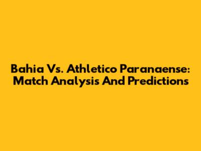 Bahia Vs. Athletico Paranaense: Match Analysis And Predictions