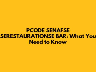 Why PCODE SENAFSE SERESTAURATIONSE BAR Matters