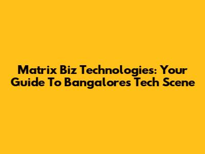 Matrix Biz Technologies: Your Guide To Bangalore's Tech Scene