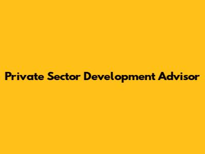 Private Sector Development Advisor: Roles And Impact