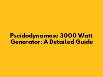 Pseidodynamose 3000 Watt Generator: A Detailed Guide