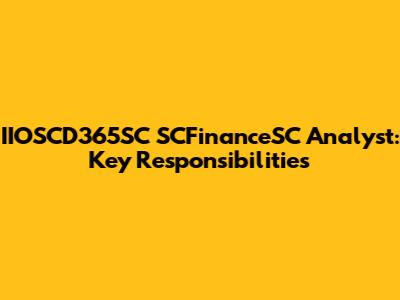 IIOSCD365SC SCFinanceSC Analyst: Key Responsibilities