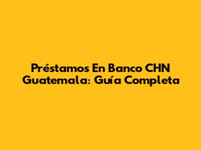 Préstamos En Banco CHN Guatemala: Guía Completa