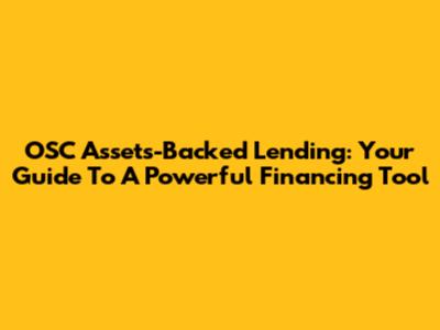OSC Assets-Backed Lending: Your Guide To A Powerful Financing Tool