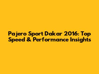 Pajero Sport Dakar 2016: Top Speed & Performance Insights