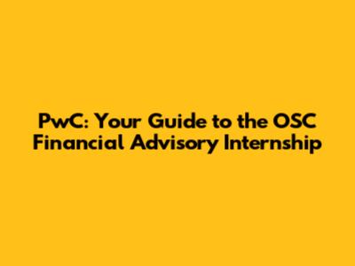 Hey guys! Thinking about diving into the world of finance with an internship? Specifically, are you eyeing that OSC (Ontario Securities Commission) Financial Services Advisory internship at PwC? Well, you've come to the right place. Let's break down what this internship entails, why it's a golden ticket, and how you can snag it. This isn't just any internship; it’s a launchpad for your career in financial advisory, offering a blend of real-world experience and learning that's hard to match. So, buckle up as we explore everything you need to know to make the most of this opportunity. Whether you're polishing your resume or prepping for interviews, consider this your go-to guide for all things PwC OSC Financial Services Advisory internship.