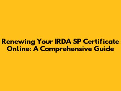 What is an IRDA SP Certificate and Why Renew It?