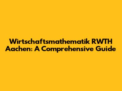 Wirtschaftsmathematik RWTH Aachen: A Comprehensive Guide