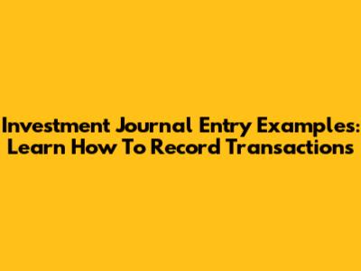 Investment Journal Entry Examples: Learn How To Record Transactions