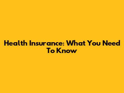 Health Insurance: What You Need To Know