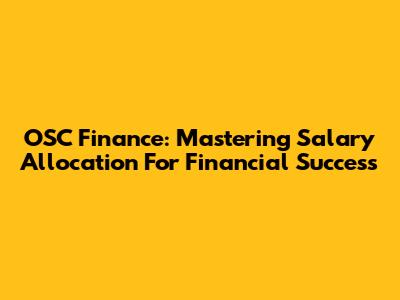 OSC Finance: Mastering Salary Allocation For Financial Success