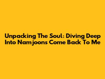 Unpacking The Soul: Diving Deep Into Namjoon's 'Come Back To Me'