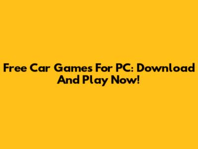 Free Car Games For PC: Download And Play Now!