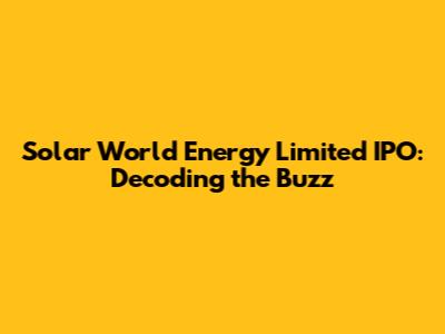 Hey everyone! Let's dive deep into the Solar World Energy Limited IPO. We're going to break down everything from the Grey Market Premium (GMP) to the potential investment strategies, and everything in between. This IPO has been making waves, so buckle up as we dissect what's making it tick and whether it's a good fit for your investment portfolio. We'll be looking at what's driving the buzz, and what you need to know before you make any decisions. It's crucial to understand all the factors involved, so you can make informed choices. This detailed analysis should help you gain clarity and confidence in evaluating this IPO.