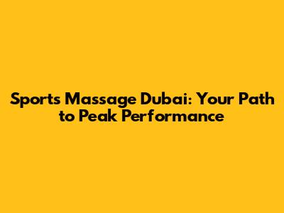 Sports Massage Dubai: Your Guide To Enhanced Performance