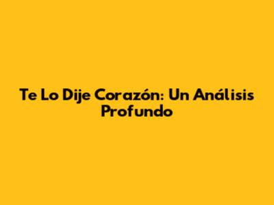 Te Lo Dije Corazón: Un Análisis Profundo