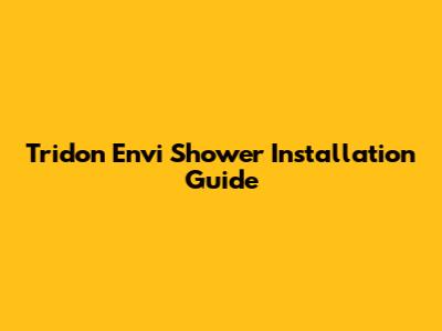 Tridon Envi Shower Installation Guide