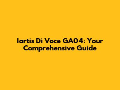 Iartis Di Voce GA04: Your Comprehensive Guide