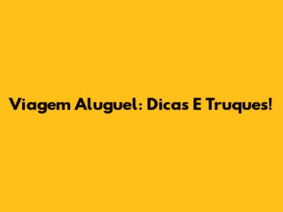 Viagem Aluguel: Dicas E Truques!
