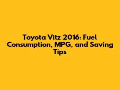 Understanding the Toyota Vitz 2016 Fuel Consumption