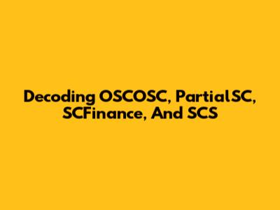 Decoding OSCOSC, PartialSC, SCFinance, And SCS