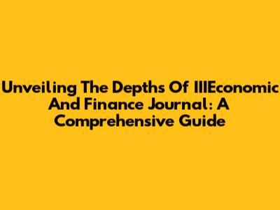 Unveiling The Depths Of IIIEconomic And Finance Journal: A Comprehensive Guide