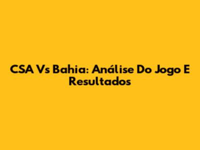 CSA Vs Bahia: Análise Do Jogo E Resultados