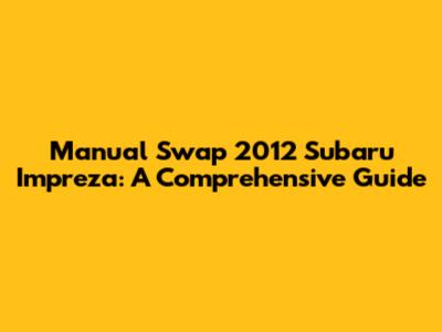 Manual Swap 2012 Subaru Impreza: A Comprehensive Guide