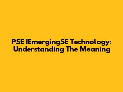 PSE IEmergingSE Technology: Understanding The Meaning