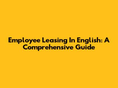Employee Leasing In English: A Comprehensive Guide