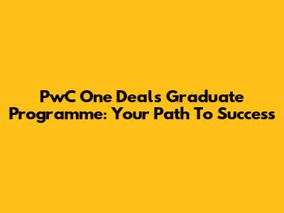 PwC One Deals Graduate Programme: Your Path To Success